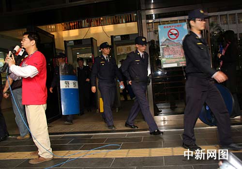 吳淑珍離開(kāi)前警察走出地院在周邊戒備。中新社記者 陳立宇 攝