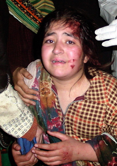 在襲擊中受傷的兒童。