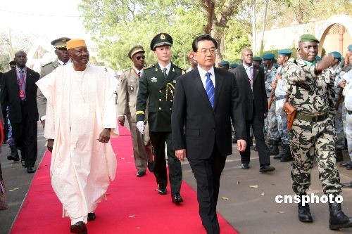 圖:馬里總統(tǒng)杜爾舉行儀式歡迎胡錦濤