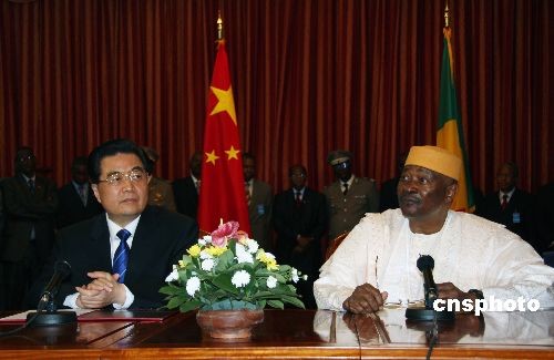 圖:胡錦濤與馬里總統(tǒng)杜爾共見記者