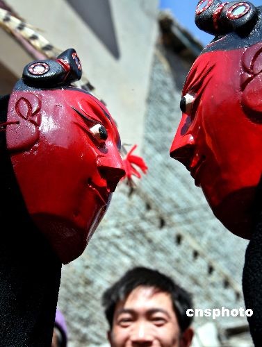 2月12日是農(nóng)歷正月十八,貴州省安順市西秀區(qū)吉昌屯舉辦隆重的“抬汪公”活動(dòng),是屯堡村寨每年最隆重的活動(dòng)之一,四鄉(xiāng)八寨的村民都會(huì)來(lái)到汪公祠堂燒香拜祖神,祭祀汪公!疤艄笔峭捅と俗孑厒鞒械闹匾⒌洹C磕暾率璩,屯堡人就把紅面長(zhǎng)須身穿官袍的“汪公”他老人家從平日香火侍奉的“汪公廟”里請(qǐng)出,端放在一個(gè)紅錦緞扎成的轎子里,由全屯最有威望的老人引路,轎前有儀仗隊(duì)鳴鑼開(kāi)道,轎后跟隨高妝彩車、蓮船、地戲隊(duì),前呼后擁,游鄉(xiāng)串寨,熱鬧非凡。中新社發(fā) 彭年 攝