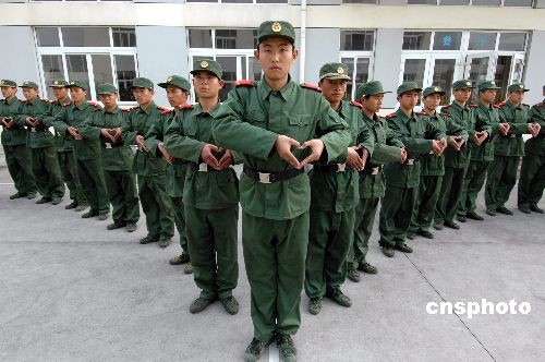 浙江溫州邊防支隊(duì)新兵連戰(zhàn)士們?cè)诨@球場(chǎng)上組成一個(gè)美麗的軍綠色“心”形圖案,給遠(yuǎn)方的父母和女友送去祝福。中新社發(fā) 吳水斌 攝