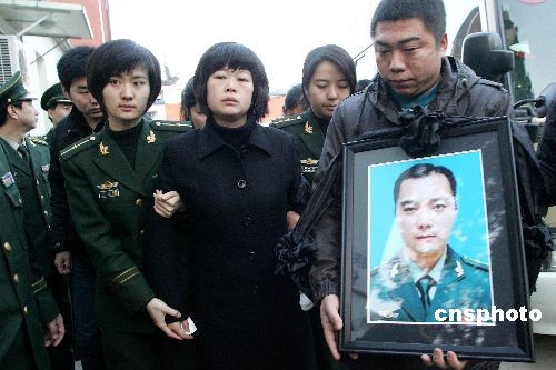 2月14日上午,張建勇烈士遺體告別儀式在北京八寶山殯儀館舉行,北京市相關(guān)單位負(fù)責(zé)人以及烈士親屬、戰(zhàn)友、生前好友600余人參加。2月10日凌晨1時(shí)40分,北京市公安局消防局朝陽(yáng)支隊(duì)紅廟中隊(duì)指導(dǎo)員張建勇,在撲救央視新址附屬文化中心在建工地重大火災(zāi)中壯烈犧牲,離他30歲生日僅有16天。2月12日,中國(guó)公安部批準(zhǔn)張建勇為革命烈士。中新社發(fā) 富田 攝