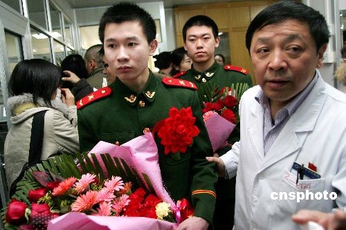 2月17日,在撲救2月9日晚央視新址北配樓大火中受傷的5名消防官兵,在北京朝陽(yáng)醫(yī)院的救治下康復(fù)出院,醫(yī)院醫(yī)護(hù)人員舉行了簡(jiǎn)短而隆重的歡送儀式,為消防官兵送上祝福。目前,因吸入有毒有害、高溫氣體造成肺部嚴(yán)重?fù)p傷的消防中隊(duì)長(zhǎng)張少輝仍需留院觀察。