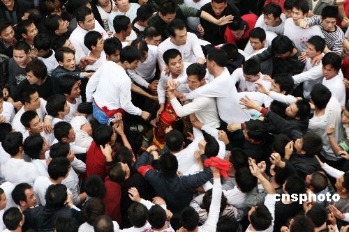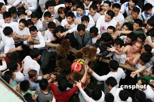 2月16日,農(nóng)歷正月二十二,廣東汕頭市鹽灶村舉行獨(dú)特的傳統(tǒng)“搶財(cái)神”活動(dòng);顒(dòng)中,一些被挑選出來的村民將廟里的神像抬出來游行,其他村民則競(jìng)相涌上前觸摸甚至奪取、拖行神像。按照村里的老話:“老爺公喜歡拖,越拖越興旺!边@一獨(dú)特盛會(huì)吸引了數(shù)千人前來助威觀看,比過春節(jié)還熱鬧。