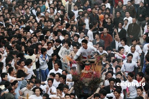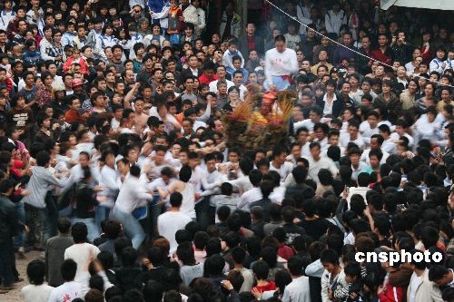 圖:廣東汕頭鹽灶村 人山人海“搶財(cái)神”(2)