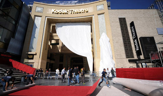 2月18日,在美國好萊塢柯達(dá)劇院,工人們正在門前鋪設(shè)紅地毯,準(zhǔn)備迎接奧斯卡的頒獎(jiǎng)典禮。第81屆奧斯卡獎(jiǎng)?lì)C獎(jiǎng)典禮將于22日在柯達(dá)劇院舉行,將會有眾多明星走過這條“星光大道”。