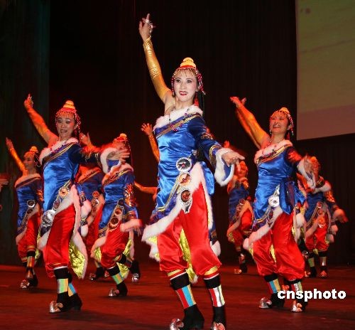 為歌頌今日西藏的變化,中國民族舞蹈演員與當(dāng)?shù)孛绹霞又萑A人華僑一起進(jìn)行了多次西藏民族舞蹈演出,受到當(dāng)?shù)厝A人華僑熱烈歡迎。