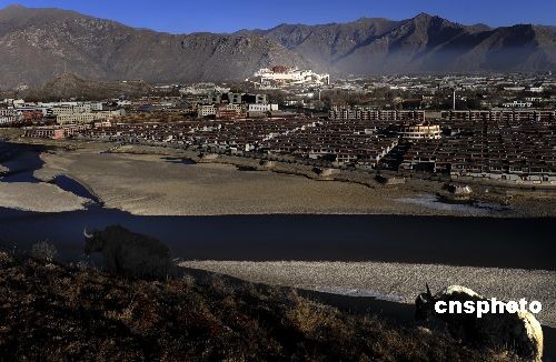 2009年初春,從山坡上俯瞰拉薩,動(dòng)植物、河流、城市、藍(lán)天和諧共生。50多年來(lái),特別是改革開(kāi)放以來(lái),中國(guó)中央政府和西藏自治區(qū)地方政府為保護(hù)西藏的生態(tài)環(huán)境做出巨大努力,取得顯著成就。從2006年1月1日起,自治區(qū)全面禁止開(kāi)采砂金礦;2008年1月1日起又全面禁止砂鐵資源的開(kāi)采。2006年至2010年的第十一個(gè)五年計(jì)劃期間,國(guó)家將投入近200億元人民幣資金構(gòu)建西藏高原國(guó)家生態(tài)安全屏障,項(xiàng)目涉及天然草地的保護(hù)、野生動(dòng)植物保護(hù)及保護(hù)區(qū)建設(shè)、防護(hù)林體系建設(shè)、傳統(tǒng)能源替代、防沙治沙、水土流失治理等共3大類10項(xiàng)工程。中新社發(fā) 廖攀 攝