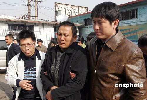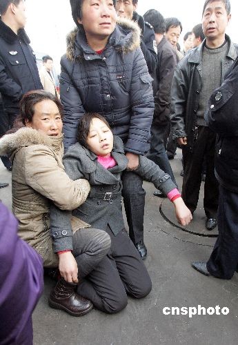 山西焦煤集團屯蘭礦“2·22”特大瓦斯爆炸事故新聞中心,2月23日中午舉行第四次新聞發(fā)布會。據通報,目前事故的搜救工作已經基本結束,事故賠償工作正在有序進行。目前事故已造成74人遇難,114人住院觀察、治療。5名危重傷員當中,有3人生命體征恢復正常,另外2人未脫離危險。事故賠償標準為每人不低于20萬元人民幣。由于每個礦工都投了工傷保險和工傷意外保險,保險部門正根據他們的投保情況進行理賠。圖為傷心萬分的礦工家屬。