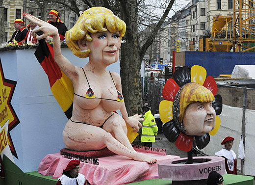 2月23日,德國(guó)民間最大的狂歡節(jié)之一科隆的“玫瑰星期一”游行舉行。該游行在科隆、美因茲及杜塞爾多夫幾個(gè)城市最為隆重,并以諷刺政治人物的搞笑充氣玩具聞名。