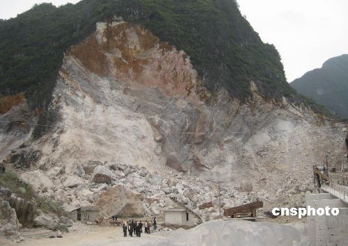 圖:廣西河池采石場(chǎng)山體大面積塌方 1人死亡