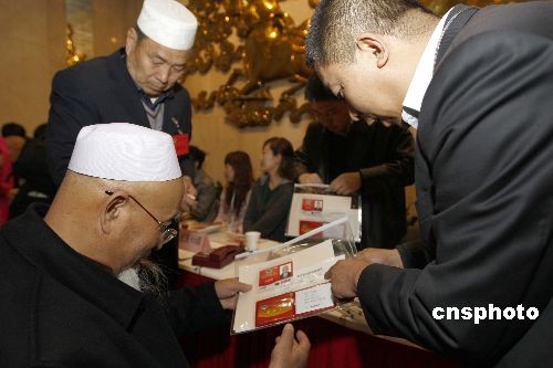 全國“兩會”即將開幕,代表、委員們3月1日陸續(xù)抵京報到。圖為甘肅省政協(xié)副主席、天水市伊斯蘭教協(xié)會會長馬國瑜(左)在北京駐地領(lǐng)取證件。中新社發(fā) 盛佳鵬 攝