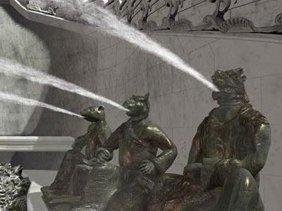 海晏堂由正樓和后工字蓄水樓組成,是最大的一處歐式園林景觀。海晏堂正樓朝西,上下各十一間,樓門左右有疊落式噴水槽,階下為一大型噴水池,池左右呈"八"字形排列著我國十二生肖人身獸頭銅像。每晝夜十二個(gè)時(shí)辰,由十二生肖依次輪流噴水,俗稱"水力鐘"。