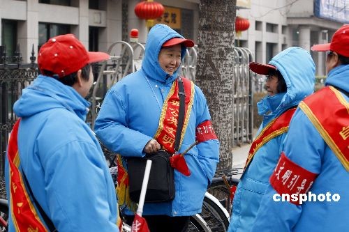 3月3日,全國政協(xié)十一屆二次會議在北京人民大會堂開幕,北京公交車站工作人員統(tǒng)一著裝,以陽光的微笑來服務(wù)到京旅游的乘客和出行的市民。中新社發(fā) 鄭雄增 攝