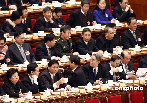 圖:委員們在全國政協(xié)大會開幕前交流