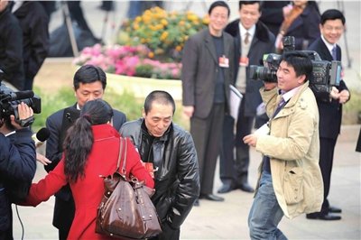 下午2點半,委員們乘坐的大客車剛停在廣場上,恭候多時的記者們便站在馬路對面開始尋找采訪目標(biāo)。梅葆玖、倪萍、姜昆、濮存昕、黃宏等明星還未走過斑馬線,就被熱情的記者攔住去路,他們也只好笑盈盈地侃侃而談起來。
