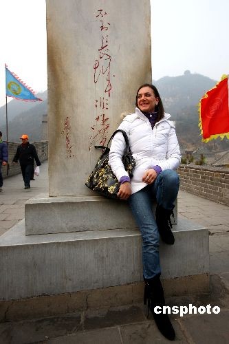 圖:撐桿跳女皇伊辛巴耶娃游覽中國長城(2)