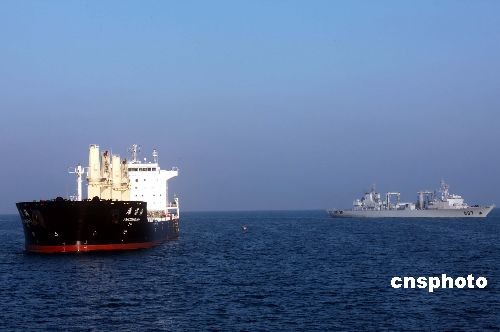 當?shù)貢r間2月26日早晨,中國海軍護航編隊“微山湖”號綜合補給艦醫(yī)護人員等乘快艇駛向“雁蕩!碧柹檀,為兩名受傷船員進行身體檢查和包扎處理。當日,“?凇碧枌楎(qū)逐艦將未參加護航而在航行途中遭遇海盜襲擊的“雁蕩海”號商船順利接護至亞丁灣東部安全海域。中新社發(fā) 孫自法 攝