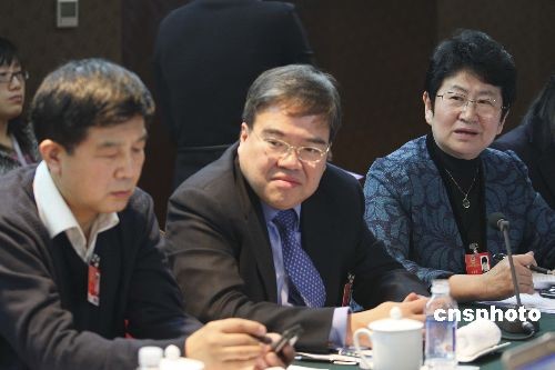 3月4日,全國(guó)政協(xié)十一屆二次會(huì)議進(jìn)行分組討論,審議政協(xié)全國(guó)委員會(huì)常務(wù)委員會(huì)工作報(bào)告和提案工作情況報(bào)告。圖為全國(guó)政協(xié)委員遲寶榮(右一)在分組討論上為百萬(wàn)“鄉(xiāng)村醫(yī)生”找出路。中新社發(fā) 盛佳鵬 攝
