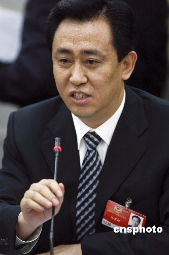 3月4日,全國政協(xié)十一屆二次會議在北京進行分組討論,全國政協(xié)委員、恒大地產(chǎn)主席許家印在分組討論上建議降低房價,讓利于民。中新社發(fā) 盛佳鵬 攝
