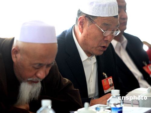 在北京參加“兩會”的民族界全國政協(xié)委員馬文丕,3月5日下午在分組討論會上建議國家在少數(shù)民族地區(qū)實(shí)行高中義務(wù)教育。中新社發(fā) 宋吉河 攝