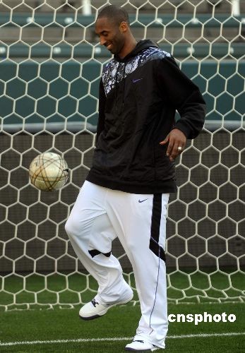 圖:NBA籃球巨星科比展示足球功夫