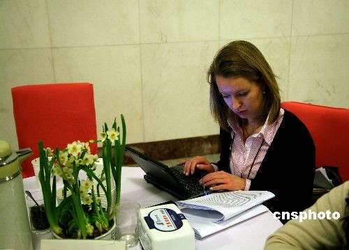 圖:各路記者忙“兩會”(2)