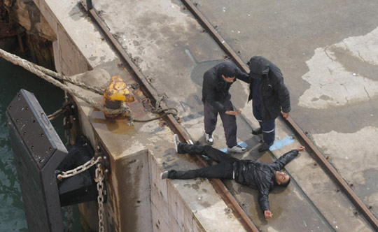 男子在試圖從繩索爬向一只駛向西班牙的小船時,被安全人員逮捕。