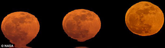 月亮的“融化”。一位名叫約翰·斯特森的美國業(yè)余攝影師拍攝到一組月亮蜃景的壯觀照片。這種罕見的天文現(xiàn)象是因不同溫度的層層空氣使月光彎曲形成的。