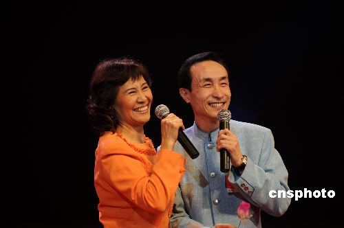 全國(guó)政協(xié)委員、著名小品演員鞏漢林夫婦表演小品。中新社發(fā) 宋健浩 攝