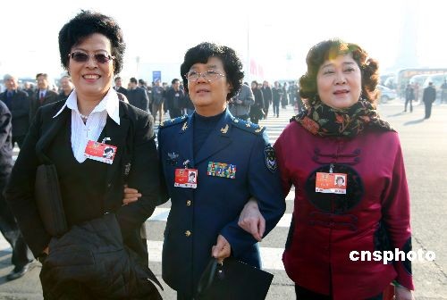 3月8日,眾多女委員在國(guó)際婦女節(jié)當(dāng)日出席全國(guó)政協(xié)十一屆二次會(huì)議舉行第三次全體會(huì)議。圖為于小文、岳喜翠、何永智在會(huì)后輕松步出人民大會(huì)堂。中新社發(fā) 楊可佳 攝