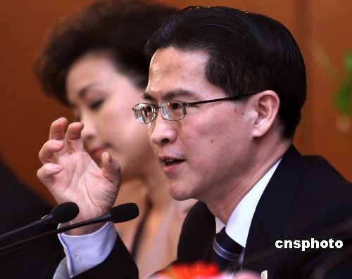 3月8日,全國政協(xié)十一屆二次會議記者會在人民大會堂新聞發(fā)布廳舉行,主題是“政協(xié)委員談上海世博會”。萬季飛、周漢民、成岳沖、楊瀾等四位委員出席并回答記者提問。周漢民回答記者提問時肯定地說,本屆世博會一定會極大地促進(jìn)我們海峽兩岸的經(jīng)貿(mào)和文化往來。中新社發(fā) 宋吉河 攝