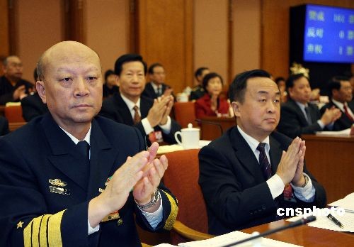 3月9日上午,十一屆全國人大二次會議在北京人民大會堂舉行第二次主席團會議,主席團成員、解放軍海軍司令員吳勝利上將出席。中新社發(fā) 任晨鳴 攝
