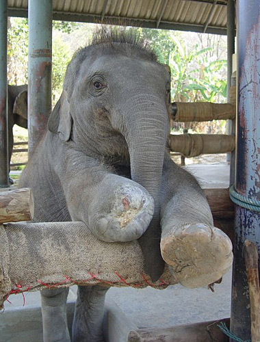 據悉,這只亞洲象名叫摩薩,當前已有3歲大。2007年不幸踩到地雷后,前右腿慘遭炸毀,醫(yī)生為其實施了緊急救治,并為其安裝假肢。摩薩目前已經逐步適應假肢,不久將會重返一個亞熱帶叢林。