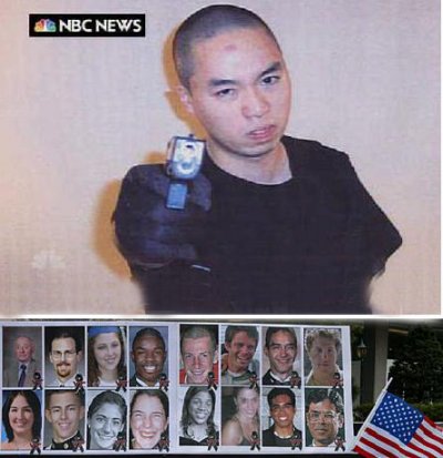這張美國全國廣播公司2007年4月18日晚間新聞的電視截圖顯示,弗吉尼亞理工大學(xué)槍擊案兇手、韓國籍學(xué)生趙承熙擺出持槍射擊的姿勢(shì)。趙承熙16日在作案間隙曾向美國全國廣播公司寄過一個(gè)包裹,里面包括錄像帶和照片,錄像中有不少攻擊和謾罵“富人”的內(nèi)容。趙承熙在弗吉尼亞州一所大學(xué)兩個(gè)多小時(shí)內(nèi)兩度開槍行兇,造成33人死亡,20多人受傷,兇案震驚全球。