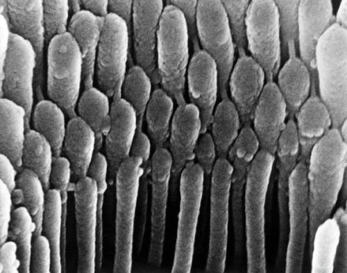 耳毛細胞:這張圖片看起來好像是在耳朵里面對耳毛細胞進行近距離觀察時拍攝的。耳毛細胞的主要功能是發(fā)現(xiàn)對聲震作出反應(yīng)時產(chǎn)生的機械運動。