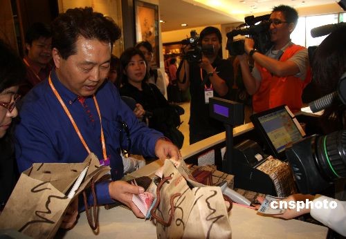 圖為“安利心印寶島萬人行”首發(fā)人員在臺北故宮博物院購物。中新社發(fā) 陳立宇 攝