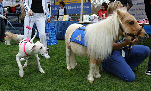寵物馬“柳樹”成為小狗注視的焦點(diǎn)。