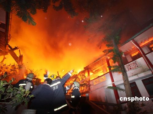 消防官兵奮力撲救火災(zāi)。 中新社發(fā) 唐海波 攝