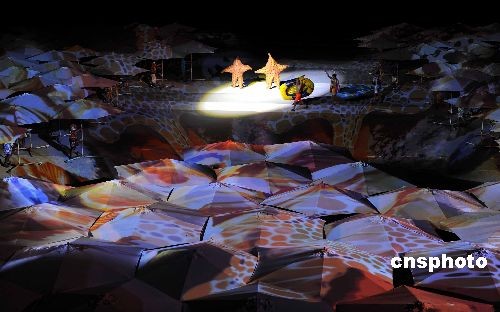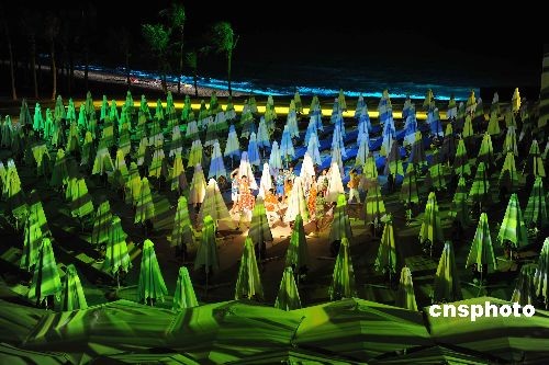 由張藝謀、王潮歌和樊躍“鐵三角導(dǎo)演”共同指導(dǎo)的大型實景演出——《印象海南島》,于3月16日晚在海南省海口市的印象劇場首次對外試演!队∠蟆ずD蠉u》試演近一個月,再經(jīng)過修改及完善,于4月中旬舉行的博鰲亞洲論壇期間正式公演。《印象·海南島》演出長70分鐘,印象劇場可容納1600名觀眾,230名男女演員平均年齡19歲,都是在海南島經(jīng)過嚴格選拔的。