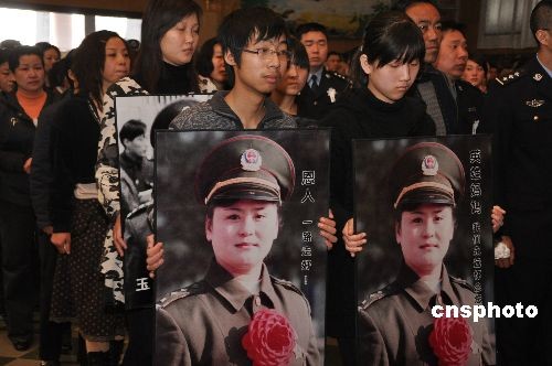 3月18日上午,鄭州市各界5000多人隆重悼別英雄女警王玉榮,為鄭州公安女英雄、全國公安一級英模、三級警監(jiān)、鄭州市公安局中原分局原副局長王玉榮送行。13年前王玉榮冒著生命危險從身帶炸藥包歹徒手里解救出28名兒童和2名幼師人質(zhì)并機智將歹徒擊斃。后因積勞成疾與病魔頑強抗爭7年后于2009年3月14日病逝,英年48歲。
