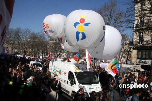 圖為巴黎的示威游行隊(duì)伍在共和國廣場集結(jié)。中新社發(fā) 吳衛(wèi)中 攝