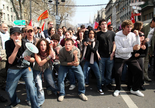 3月19日法國(guó)各大工會(huì)在全國(guó)各地聯(lián)合組織罷工和示威游行等活動(dòng),抗議政府在應(yīng)對(duì)當(dāng)前經(jīng)濟(jì)危機(jī)過(guò)程中忽視勞動(dòng)者權(quán)益和社會(huì)福利。