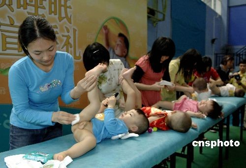 3月21日是世界睡眠日,在“科學管理睡眠”的號召下,廣州舉行了金質(zhì)睡眠宣誓活動全國巡展第一站,上千名小寶寶在爸爸媽媽們的帶領下宣誓。除了熱情洋溢的寶寶宣誓禮外,還舉行了媽媽為寶寶換尿布比賽。中新社發(fā) 劉衛(wèi)勇 攝