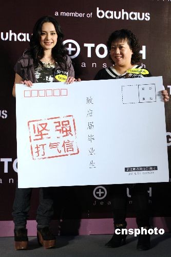 2009年3月21日,香港歌星阿嬌在北京西單大悅城為其代言的牛仔品牌做最后一站巡回宣傳。阿嬌在活動中表示很遺憾沒能到北京看奧運(yùn)會,但這次接下復(fù)出后第一份工作并在北京看到支持的歌迷讓她感受到了生活的快樂和堅強(qiáng)的意義。中新社發(fā) 袁方 攝