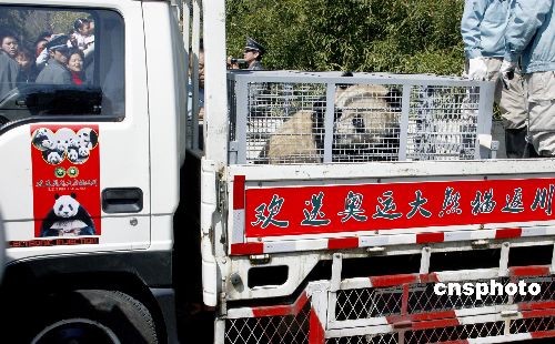 圖:北京8只奧運(yùn)大熊貓啟程“回家”