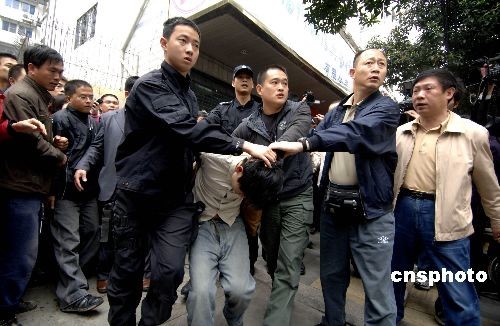 三月二十三日上午,福州警方在福州市區(qū)湖東路誠信典當(dāng)行抓獲劫持三名人質(zhì)的嫌犯,成功解救三名人質(zhì)。這起劫持人質(zhì)事件是該典當(dāng)行的一名保安,他劫持了該典當(dāng)行的三名工作人員作為人質(zhì),具體原因還在調(diào)查之中。中新社發(fā) 王東明 攝