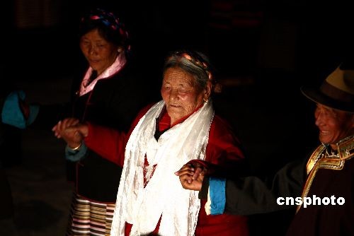3月23日晚,西藏山南地區(qū)結(jié)巴鄉(xiāng)結(jié)巴村的村民自發(fā)組織篝火晚會(huì),喜迎西藏百萬農(nóng)奴解放日。結(jié)巴鄉(xiāng)是西藏第一個(gè)“朗生互助組”的誕生地。西藏實(shí)行民主改革后,廣大農(nóng)奴獲得了解放,自己當(dāng)家做主,并擁有了土地。圖為83歲高齡的次仁拉姆(左)表示:百萬農(nóng)奴解放紀(jì)念日是山南地區(qū)農(nóng)民最吉祥和最幸福的一天。1959年西藏山南地區(qū)實(shí)行民主改革以后,結(jié)巴村被解放的農(nóng)奴和朗生們自主地組織成立了第一個(gè)“朗生互助組”,而當(dāng)年倡議成立互助組并任組長的就是次仁拉姆。中新社發(fā) 杜洋 攝