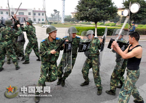 圖:成都空軍雷達某團逼真模擬處突演練(3)